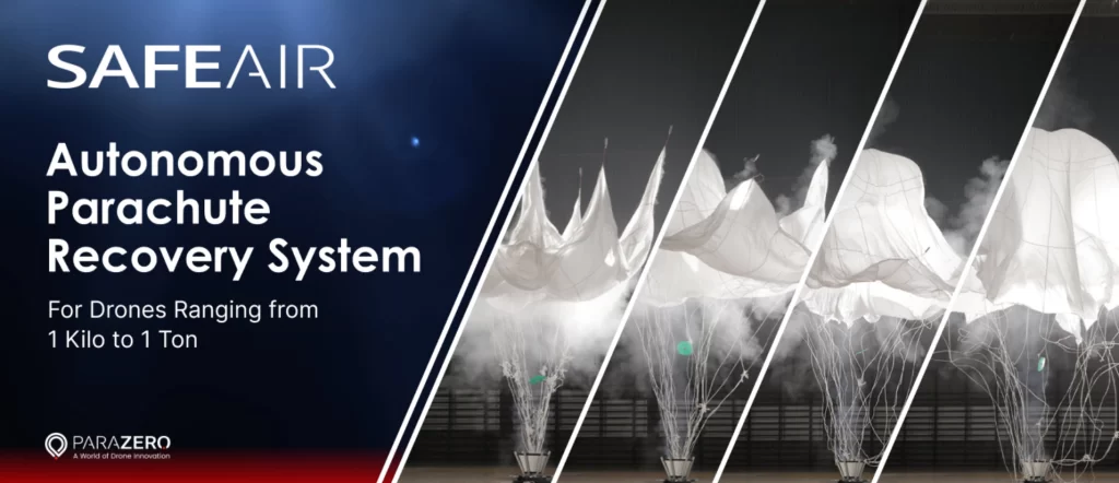 We are able to provide parachute solutions from two different companies that each have specific expertise in rescue parachute solutions. We offer pyrotechnic solutions from ParaZero located in Be’er Sheva, Israel for VTOL or transitional VTOL aircraft that require a deployment mechanism to propel the parachute away from the aircraft. We also offer fixed wing rescue/recovery parachute and air bag solutions from PASA – UAV Safety Solutions AG located in Landsberied, Germany (just outside of Munich). The advantage of PASA solutions is the size/weight is typically smaller than other solutions on the market. They also have an auto cord cutter solution that releases the parachute once the air vehicle has landed to minimize any damage due to high wind. ParaZero rescue parachute solutions are for large aircraft but they also provide parachute delivery solutions and cUAS ballisic net solutions.