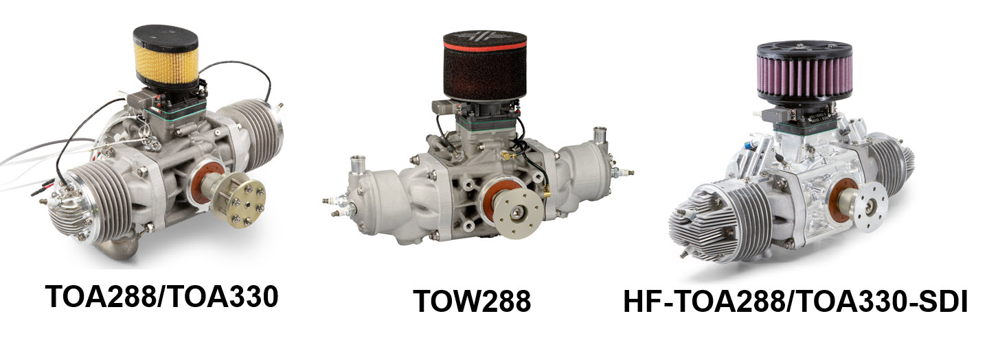 - HF-TOA288-SDI (Air-cooled, 288cc, semi-direct injection, Heavy Fuel*) 16.5kW (22.5hp)