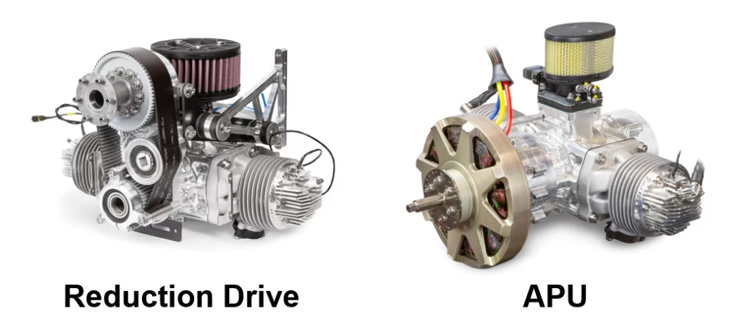 The first engine developed by the joint team was the Suter TOA288, a twin-cylinder, horizontal opposed, air-cooled, two-cycle engine with a 288cc displacement. It features a fuel-saving electronic engine management system, 1kW starter/generator (2kW also available) and automatic altitude/temperature compensation producing 17.5kW (24HP). All engines are manufactured in Switzerland and are 100% tested and supplied with a certificate of conformance. We also offer APU solutions for eVTOL’s as well as reduction drive solutions to increase thrust and reduce noise.