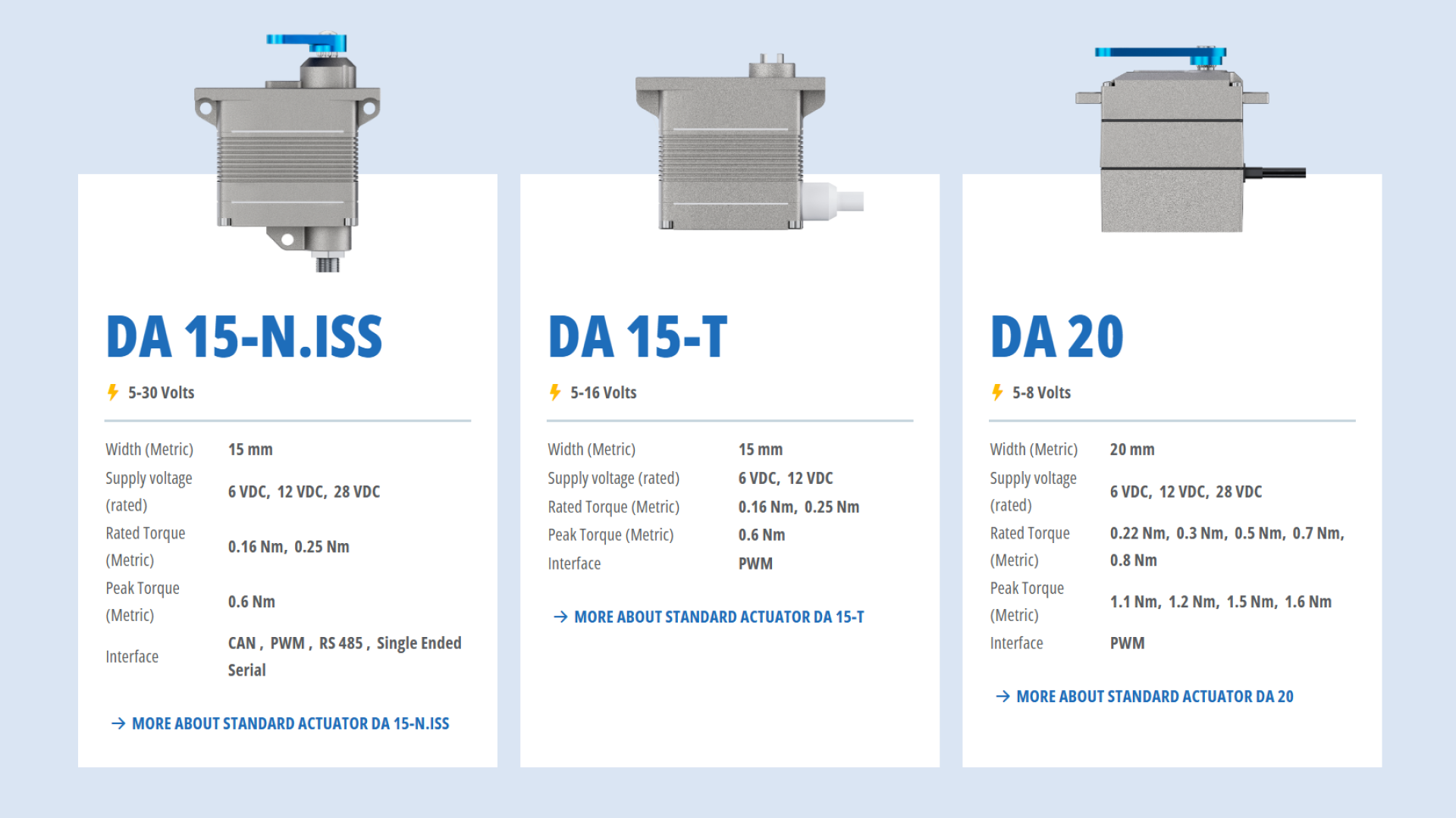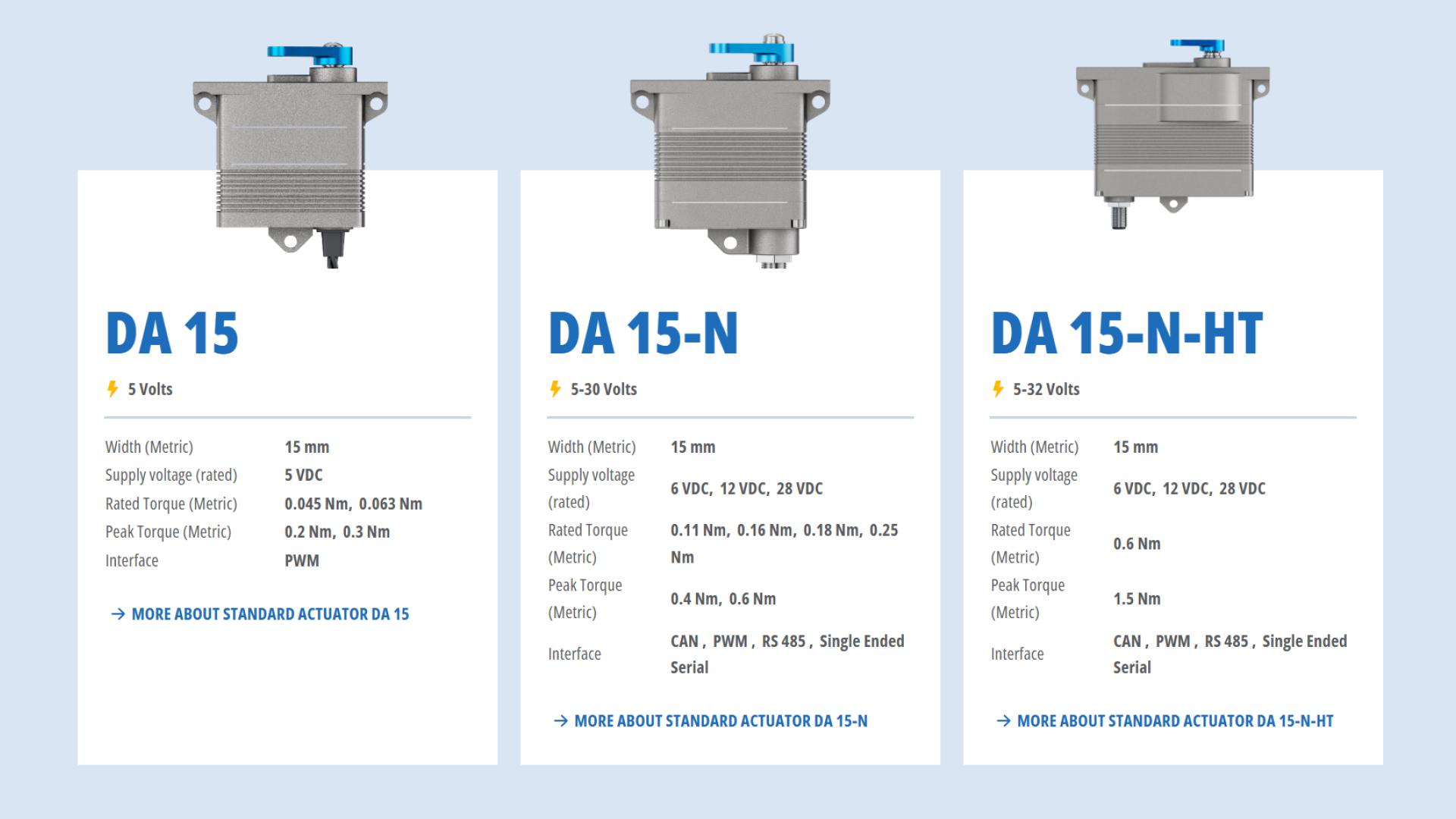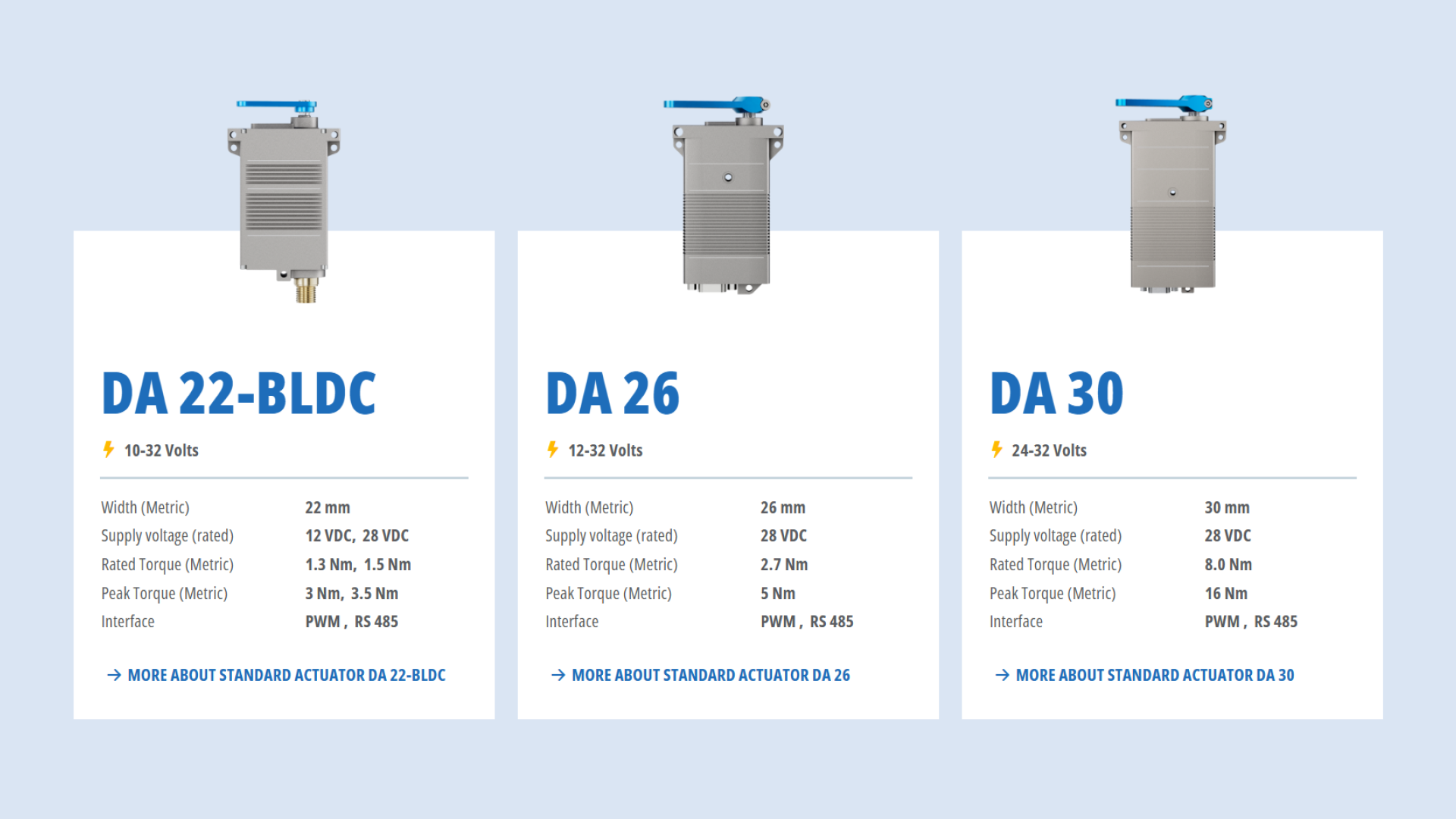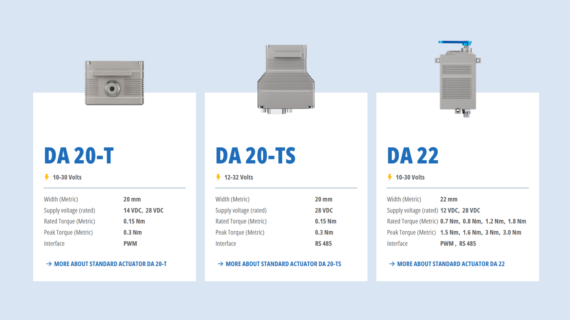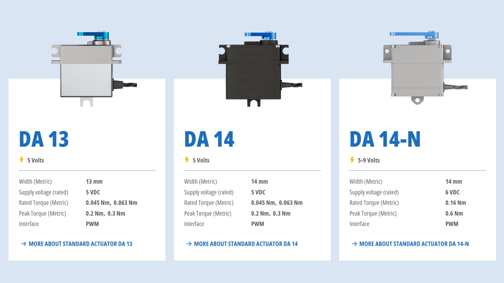 Highest quality and reliability off the shelf: In the standard range of electromechanical Volz actuators you will find servos for countless aviation applications. Discover the powerful, versatile and reliable Volz standard servos from DA 13 to DA 36-LP.