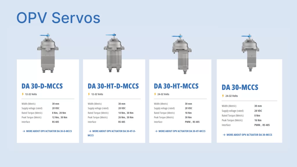 Volz’ OPV servo range is based on well proven standard Volz servos. The OPV versions feature a toothless electromagnetic clutch allowing the pilot to disengage or engage the servos when required. All servos feature external position sensing which is a unique feature in the market. With a new internal design (patent pending) the servos no longer require the external sensor mount known from previous Volz OPV servos. The avoidance of the external sensor mount is lowering the part count including electronics and in consequence is increasing the overall reliability and MTBF. To also withstand high environmental requirements (DO 160 G) the servos are all rated to IP 67 standard.